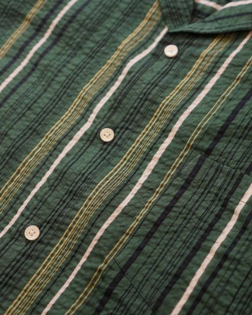 50s~60sのUSの開襟シャツをベースにし、素材は綿100のシアサッカー。